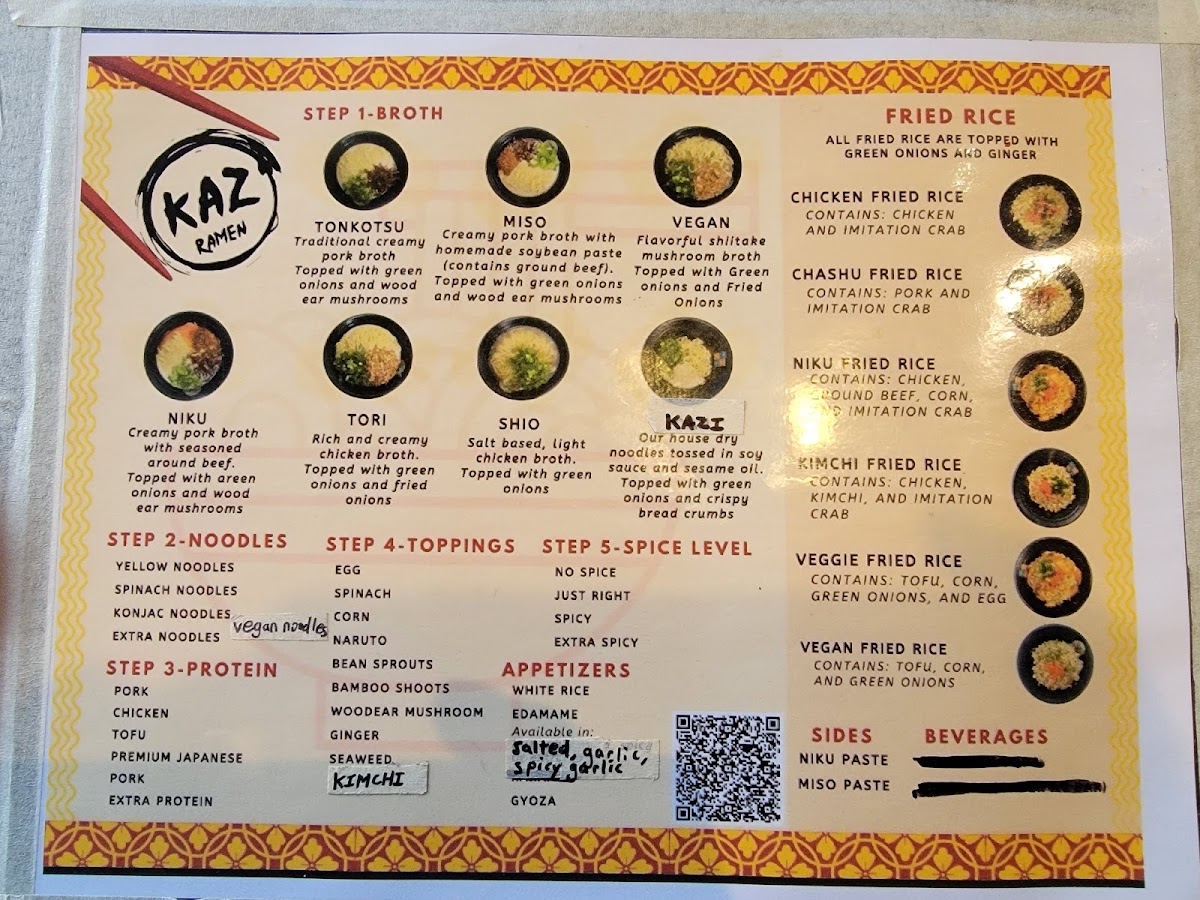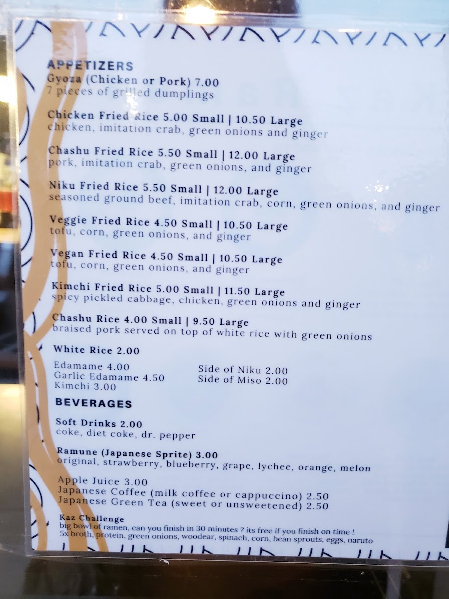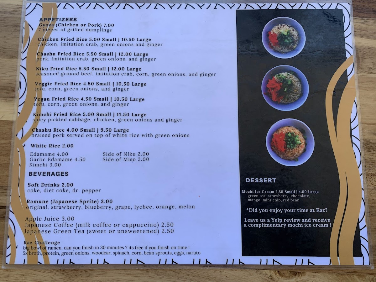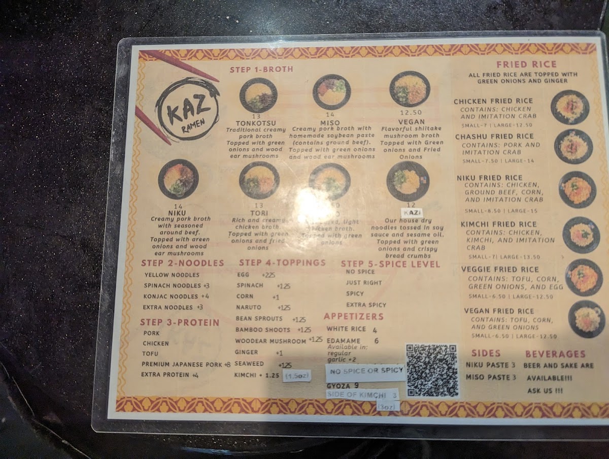 Welcome to Kaz Ramen, a hidden gem for ramen enthusiasts seeking both quality and comfort. Nestled in a cozy setting, this eatery captures the essence of Japanese cuisine with a blend of traditional flavors and contemporary flair. The atmosphere at Kaz Ramen is inviting; patrons enjoy a relaxed vibe with friendly staff ready to make your dining experience memorable.